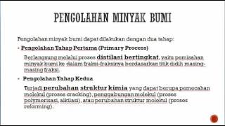 Minyak bumi yang diperoleh dari alam tidak bisa langsung dipakai. Minyak ini perlu diolah melalui penyulingan bertingkat. Setelah penyulingan masih terdapat berbagai teknik untuk meningkatkan...